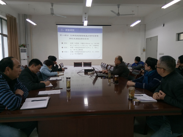 为进一步加强畜牧学重点学科成员间交流,提升学科科研水平,加快学科建设步伐,加强研究生科技创新人才培养,我校畜牧学重点学科于2016年12月7日下午,在动物科学学院会议室开展了第五次学术交流活动。学科全体成员、2016级养殖领域硕士研究生、部分2014级动科专业学生参加了本次活动。学术交流会由学科带头人戴四发主持。