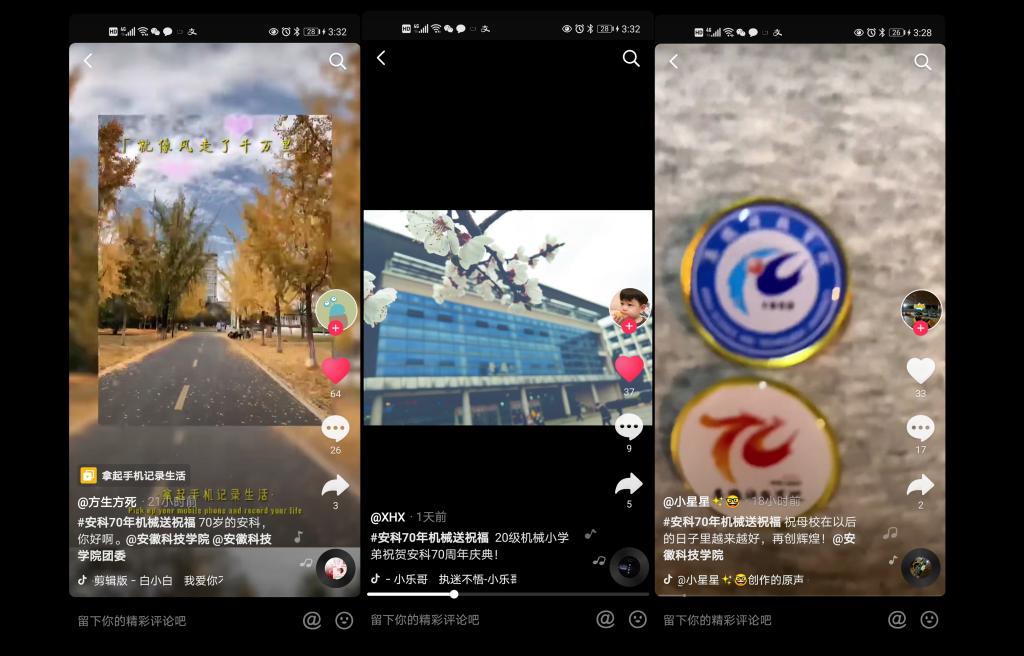 同时,为迎接我校70周年校庆,学生新媒体中心在抖音发起了#安科七十年机械送祝福#的视频接力活动,得到全院师生广泛响应,目前,参与接力短视频已突破30条,总播放量突破3万次。(特约通讯员:陈君君 审核:张严政 编辑:汤帅)