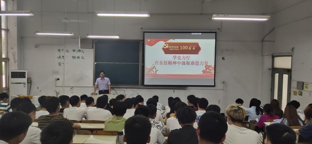 根据学校党委组织部《关于做好讲党课和优秀党课展播活动工作的通知》精神,结合团学干部培训班党史学习教育安排,2021年6月9日下午,机械工程学院在求知楼A101教室为本期团学干部培训班举办“七一”专题党课。专题党课由机械工程学院团委副书记谭博文主持,学院党委副书记张程主讲《学史力行 在长征精神中汲取奋进力量》,2019级、2020级各班班长、团支部书记、学习委员以及全体新发展学生党员参加。