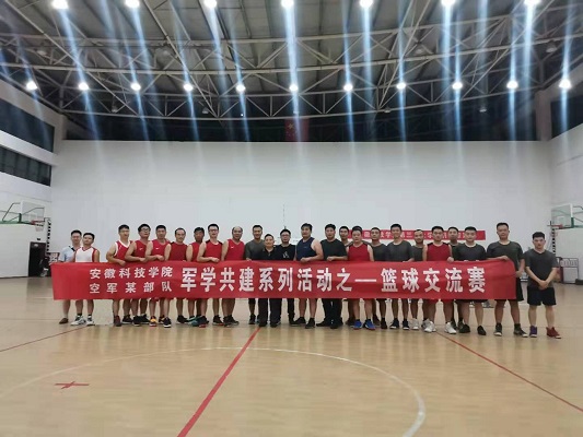 7月15日,我校篮球协会篮球队与空军某部篮球队,在凤阳校区体育馆举行军学共建友谊比赛。校工会主席汪洋观摩了比赛,并与部队篮球领队亲切交流,简要介绍学校情况以及职工体育文化活动,八一建军节来临之际向部队子弟致以节日的问候。