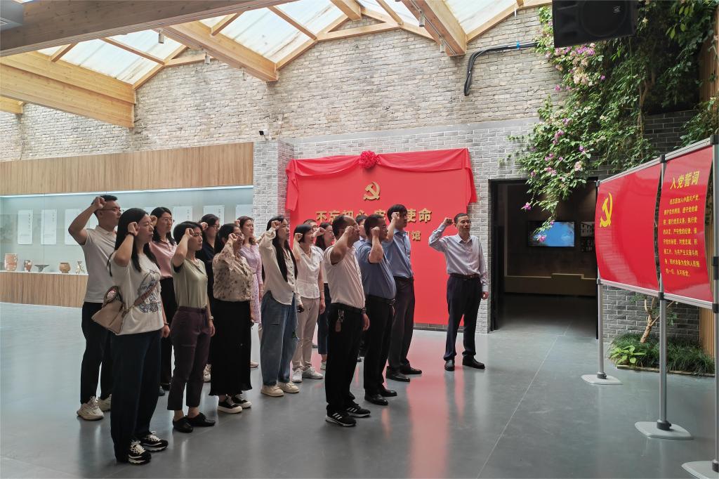参观完毕,全体党员面向党旗重温了入党誓词。