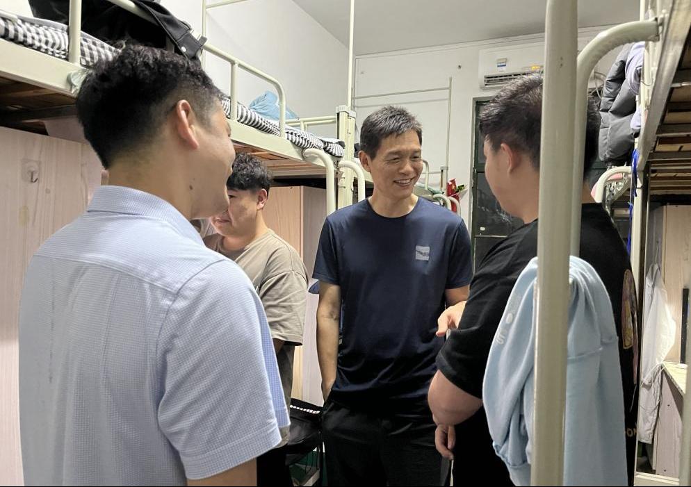 付光玺每到一间宿舍,都认真检查宿舍内安全和卫生状况,并重点查看是否存在使用违禁电器、堆放易燃易爆物品、室内吸烟或乱扔烟蒂等情况。“宿舍是同学们大学四年日夜生活的地方,宿舍安全不容忽视!”“宿舍里面不要使用和存放大功率电器,离开宿舍一定要切断电源,保证宿舍用电安全!”“宿舍内部要营造健康、积极向上的生活氛围,不要总是在宿舍打游戏,青年人就应该朝气蓬勃!”“现在已经进入夏天了,使用空调的同时也要多打开门窗通风换气。”“生病的同学,同学们要多照顾。有困难,及时找辅导员和学院领导。我们一定跟上服务好大家。”付光玺在检查过程中跟同学不断强调宿舍安全卫生和文明礼仪的重要性,并叮嘱同学们养成良好的起居习惯,营造温馨健康的宿舍环境。
